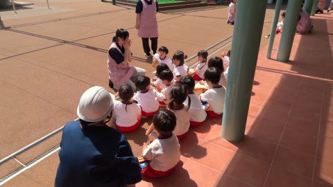外で食べると、気分はまるで遠足のよう🎵お友達や保育者と会話を楽しみながら素敵な時間を過ごしました😊