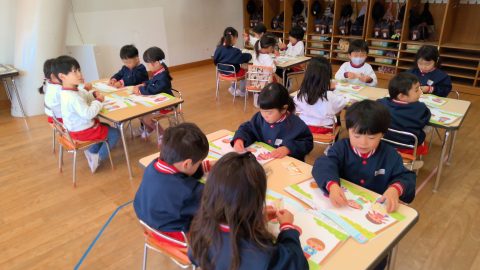 はさみやのりなど自分の力で上手にできるようになった年少さん✨