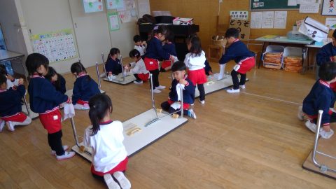 28日(火)に年少々組さんと一緒に運動会予行練習を行いました。