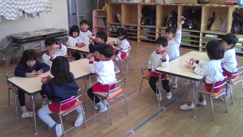 大きな声で園歌を歌ったりディズニー体操をしたりとっても楽しそうな子どもたちでした😊