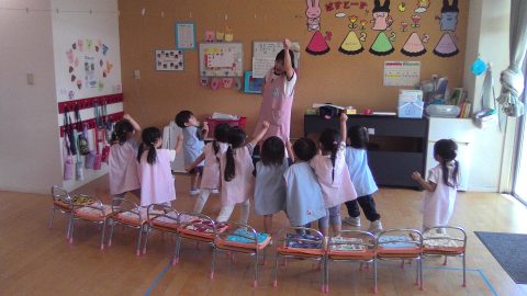 お部屋でも運動会練習を頑張っている年少々組さん!