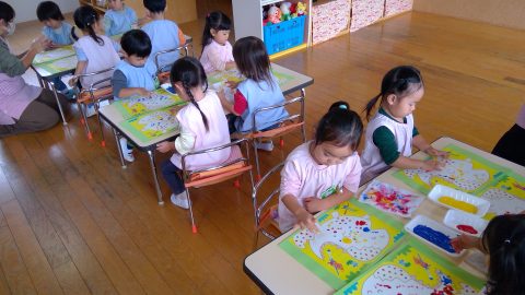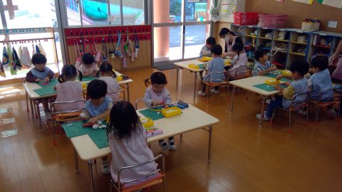 運動会本番が少しずつ近づき、お部屋や園庭で練習を一生懸命頑張っている年少々組さんですが、お部屋ではゲーム遊びもしながら皆で楽しく過ごし、良いリフレッシュとなりました😊