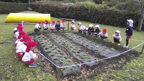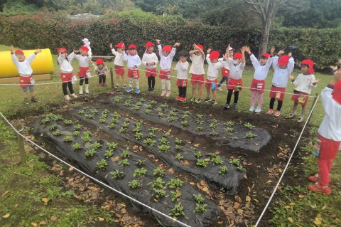 みんなで恒例の大きくなーれの魔法をかけました。収穫がますます楽しみです。