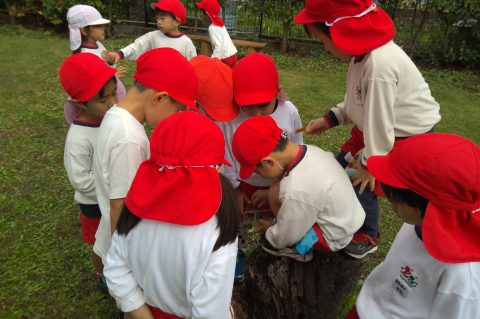 虫たちもとても元気で、コオロギやバッタ、かまきりなどを見つけてはみんなで盛り上がっています。