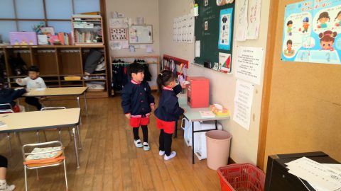 郵便屋さんごっこをしました。お友達に「何が好き?」と質問したり、喜んでくれそうな絵を考えて描いたりと、みんな真剣に楽しんで取り組んでくれていました。ハガキが仕上がると、各お部屋にあるポストに投函しました。「早く届かないかな~」と楽しみな子どもたちでした💌