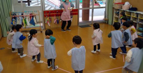 体育指導では、大繩を行いました!へびや電車に変身した大繩を跳んだり、くぐることを楽しむ子ども達☺最後は、回っている縄に入り込んで跳ぶ入り跳びを行いました!最初は、入るのに怖がる子も多かったですが、できた喜びを力にしながら自信を持って跳ぶ様子が見られました!