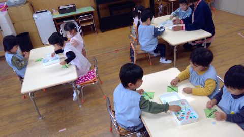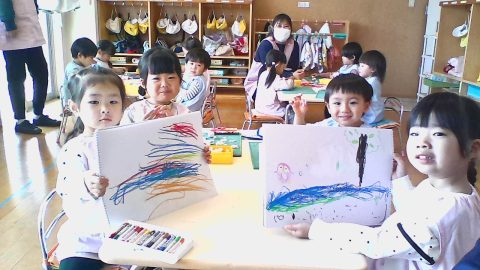 チケット作りでは、ご家族が来てくれる時に使うチケットだということを伝えると、友達と誰が来るのか楽しくお話しながら作る姿が見られました!いよいよ、本格的にお遊戯会の練習が始まってきました!子ども達と一緒に力を合わせながら練習を頑張っていきたいと思います☺