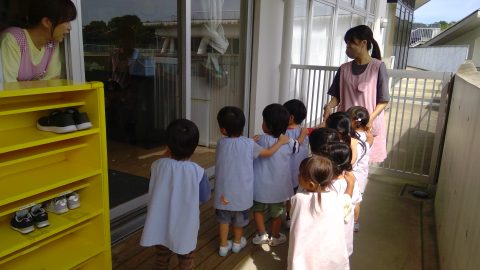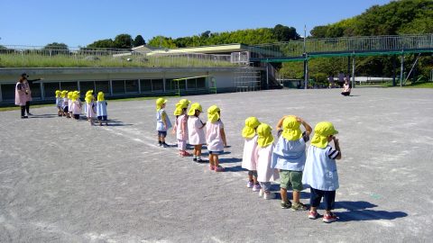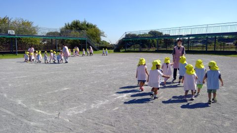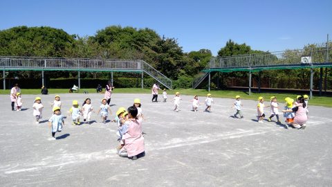 笛の合図を聞きながら上手に行進できるよう、お部屋やお外で一生懸命頑張っています!