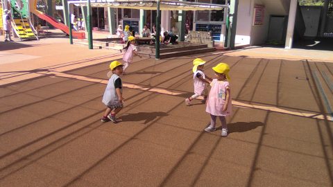 また、クラス外のお友達と一緒に遊ぶ機会もあり、少しずつお友達の顔を覚え始めてきた年少々組さんは手を振り合う姿も見られるようになりました😊