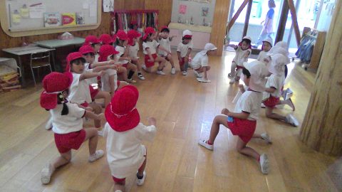 先週から運動会練習が始まり、一生懸命頑張っている年少々組さん!